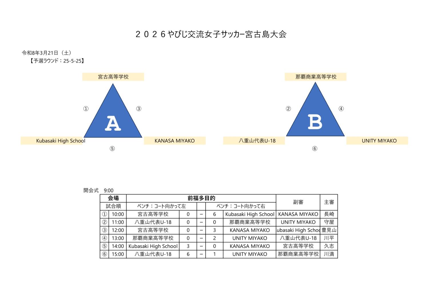日時:令和8年3月21日(土)予選リーグ