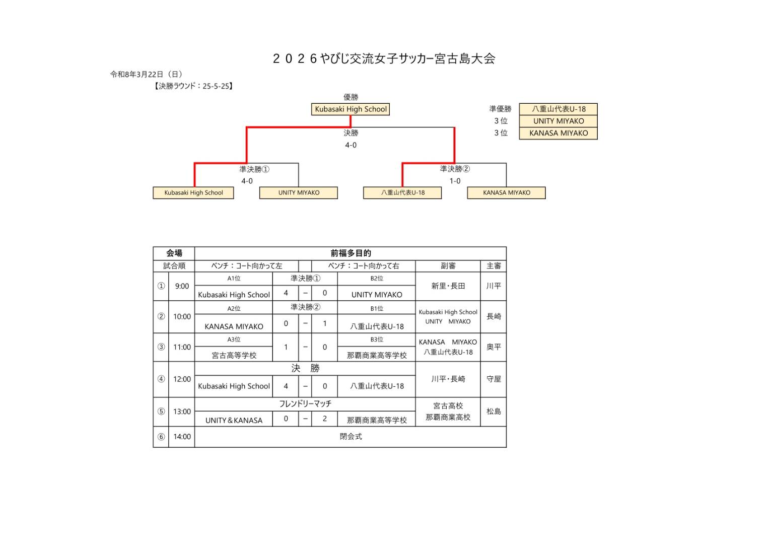 令和8年3月22日(日)決勝・準決勝