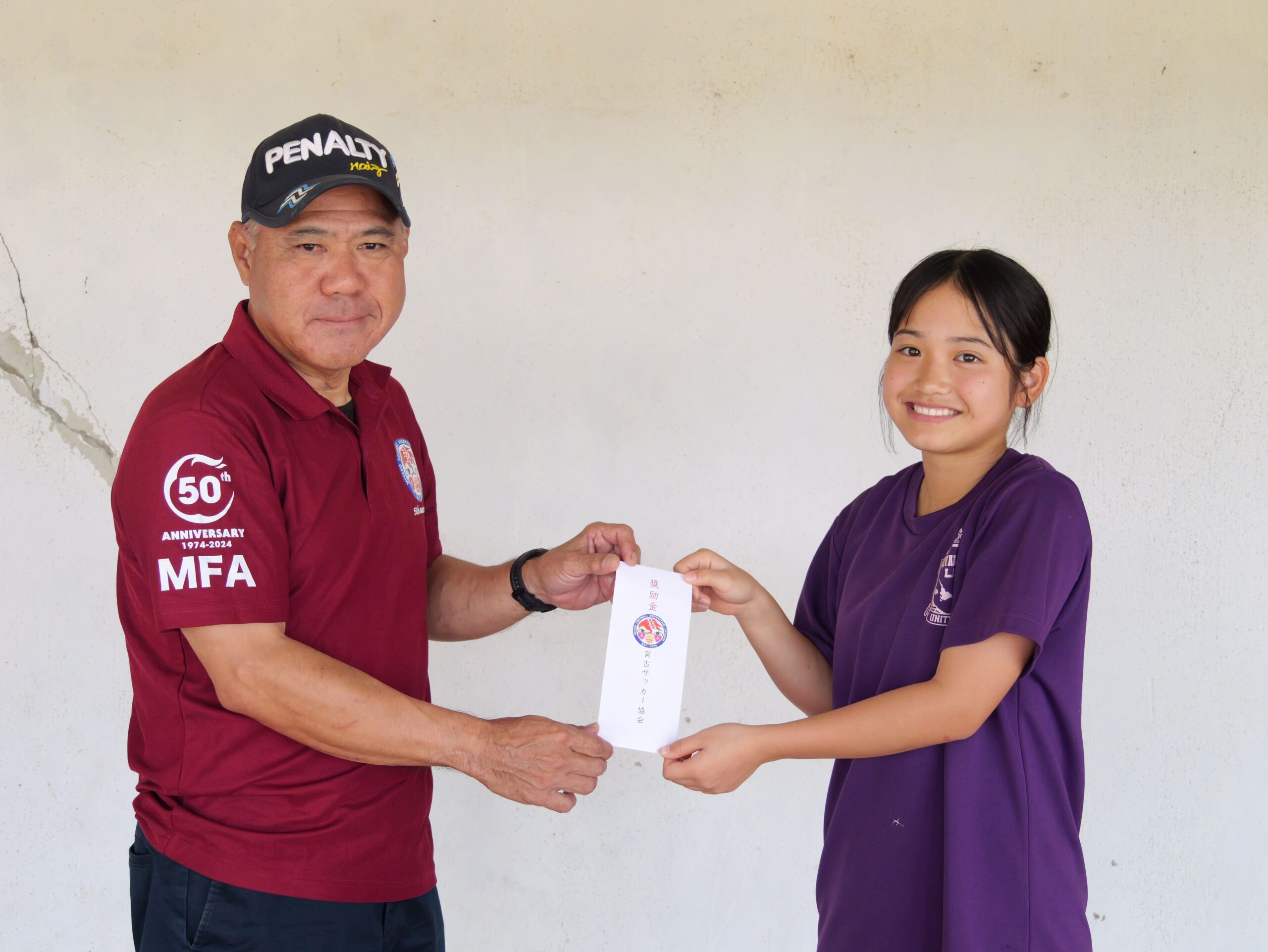 今回、北中学校1年生の恩河寿安(おんがじゅあん)選手(北中サッカ一部&UNITY MIYAKO所属)が、2025年度KYFA九州トレセンキャンプ女子u-13に派遣されることとなりましたので、宮古サッカー協会として激励金を贈呈します。